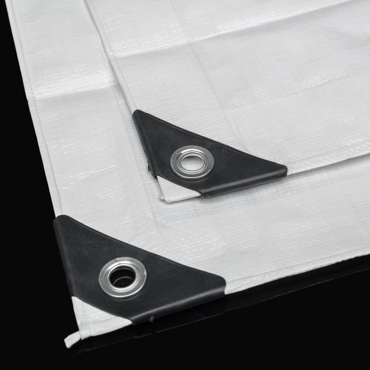 • The corners feature reinforced triangular PVC plastic with grommet.