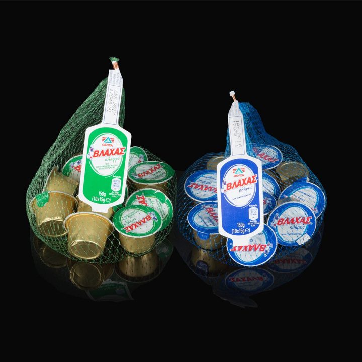 Για προϊόντα όπως φρούτα και λαχανικά σε πλαστικό κουπάκι, σκόρδα, ξηρούς καρπούς κ.λπ. συνήθως χρησιμοποιούνται μικρές συσκευασίες, κατασκευασμένες από εξηλασμένο (extruded) σωληνωτό δίχτυ. Κάθε προϊόν, σύμφωνα με το σχήμα και το μέγεθός του, απαιτεί τη δική του συσκευασία από δίχτυ, καθώς και διαφορετικό χρώμα (λευκό και μωβ για σκόρδα, κίτρινο για ακτινίδια, κόκκινο για ροδάκινα).